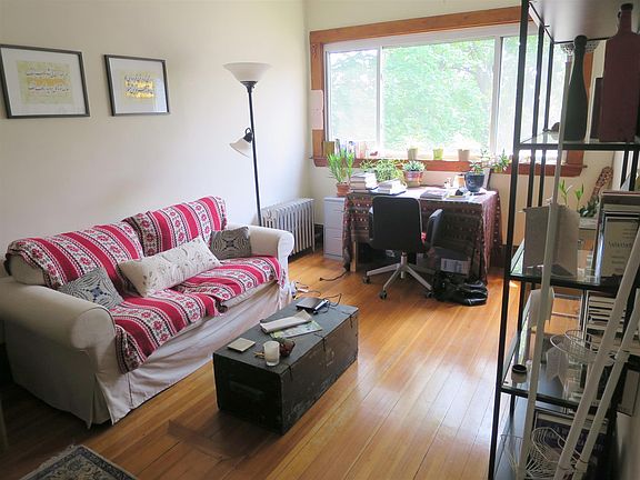 Charming 1 bed, Hardwood floors throughout in good condition. One parking spot is included. Eat in kitchen , lots of closet space, nice and sunny, porch and laundry on site. (Reference #135617)