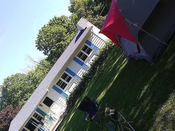Two bedrooms, an office, and 1.5 bath on ground floor another full bath and bedroom downstairs with with separate entrance plus an egress window/well a library, laundry, workspaces, and a hearth with woodburner. We heat the entire house with down wood from the property. But there is central HVAC and baseboard heat as well. The home sits on two lots, together just under five acres. One lot sloped and forested. New roof in 2020. New drainfield in 2023. New 800 sq ft parking/activities pavillian in 2023. The lot with the building is flat with lots of gardens, lawns, an orchard, grape vines, flower beds. A separate garage.