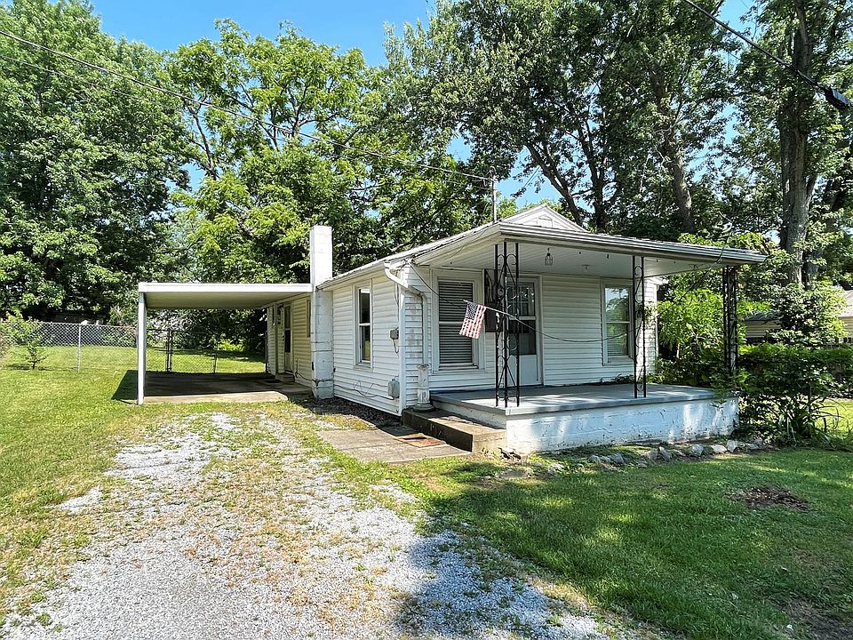 Cute-as-a-button home in the city. This 2 bed, 1 bath home offers the convenience of city living while still providing you with a large fenced-in yard to play in or host. Original hardwood throughout and linoleum flooring in the bathroom and kitchen. Plenty of parking spaces, 1 car carport attached, and a covered front porch to sip your coffee on. It offers the opportunity to make it your home or investment property. The washer and dryer convey, but the level of functionality cannot be guaranteed. Cash or conventional only. The property is sold as-is. Buyer and/or Buyer's agent to verify all information.
