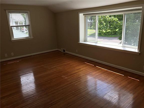 Charming colonial on beautiful tree-lined, friendly Orchard Park neighborhood street, seconds from I-590, Irondequoit Bay, shopping and dining. Beautiful hardwood floors throughout with two large bedrooms and additional guestroom or children's room, each with ample closet space, 1.5 baths. Eat-in kitchen with appliances, adjacent to L-shaped Living Room/Dining Room with working fireplace. Enjoy the large backyard from the wood paneled three-season enclosed porch! First floor laundry with appliances included, garage, and maintenance-free vinyl exterior. Freshly painted throughout!Directions: