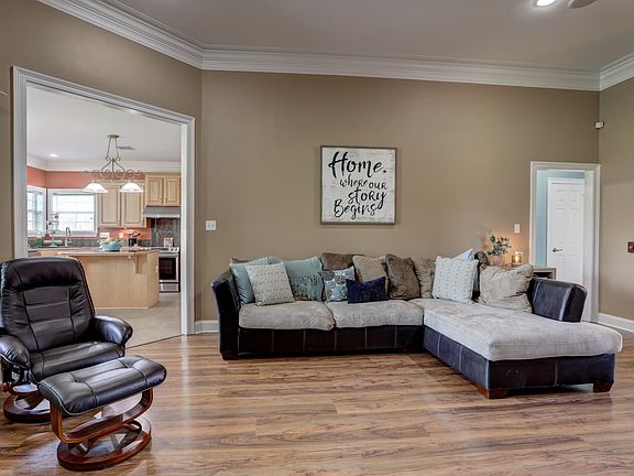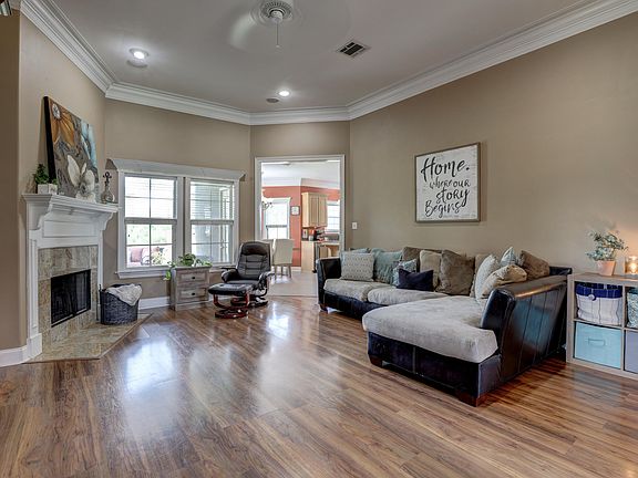 Beautiful home that has been well cared for. Lots of windows allow for natural light in every room. Walk into the living room with 9 ft ceilings, beautiful built-in entertainment center & installed speaker system that pipes music to the master suite, back yard, & living room. The kitchen is just off the living room, toward the back of the house. It's pleasant place to enjoy your morning cup of coffee, or prepare a large meal. To the right of the living room are two bedrooms and a bathroom, both with spacious closets. It's got a split floor plan so the master suite is to the left of the living room. The Master bath has a jacuzzi tub and walk-in shower, and separate closets. HVAC is approx 1 year old 2-stage system. Did not flood. Adjacent lot available (106 Talon Rd, MLS# 19008231)