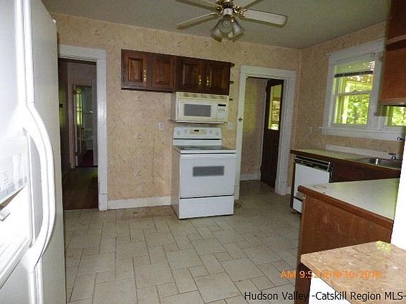 Spacious Brick Cape with attached 2 car garage and enclosed back porch, large lot and mature landscaping. 3 Bedrooms 2 Baths with unique floor plan left side is a 3 bedroom 1 bath - right side has its own entry and potential suite with large room with kitchenette and bath. Being sold as-is