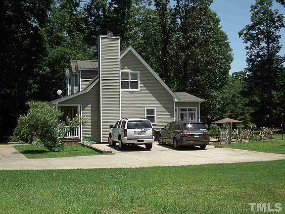 Private living on a large 1.45 acre cul-de-sac lot in the gated Lake/Golf/Pool Community of Lake Royale! Extra finished room (not permitted) can serve as an additional Bedroom, Rec Room or Bonus Room! 1st floor Master Bedroom w/garden tub, separate shower & walk-in closet. New flooring in the dining room, granite counters in both kitchen and master bath. New HVAC (8 year), new roof 2022, huge storage shed, front porch, stamped concrete patio & partial fenced area! Community features lake for boating, clubhouse with restaurant & bar + pavilion area for events, pool, tennis & golf!