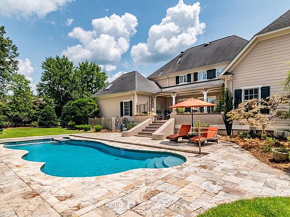 This AMAZING home is for a buyer looking for sophistication, luxury, comfort and relaxation. Gracious entertaining spaces inside and out. Open-concept interior welcomes you with an exquisite, large crystal chandelier in the foyer w/motorized lift, high ceilings, hardwood floors, custom hand-applied paint finishes and built-ins. Palladian style bookcases with linen fold cabinet doors flank the gas log fireplace. Custom mill-work such as lighted cabinets, bookcases, a fabulous wet bar and oversized moldings. Spacious chef's kitchen with breakfast area, granite countertops, double oven and gas cooktop, center island and walk-in pantry. Gorgeous Master en-Suite with travertine finishes, steam shower, air-tub, his-and-hers vanities and multiple closets. Second level boasts three large bedrooms, each with its own full en-suite bath. Bonus room is a deluxe pub-style media room with top-notch finishes, fully out-fitted wet bar with tap, refrigerator and drink-ware storage, and plenty of room for a billiard table and screen/seating area. Top-of-the-line upgrades throughout including Rinnai tankless water heater, exercise room, custom walk-in closets, plantation shutters, trey ceilings, central vacuum and laundry chute. Ample off-season and long-term storage spaces throughout. Three-bay garage with workshop opens to the tranquil pool area. The fantastic outdoor entertaining areas include an incredible heated and cooled salt water pool with travertine decking and covered veranda surrounded by mature landscaping. Expansive fencing of backyard area designed to provide privacy, protection of pool area and dog-friendly space while complimenting the landscaping are just to name a few of the many features of this superior home.
