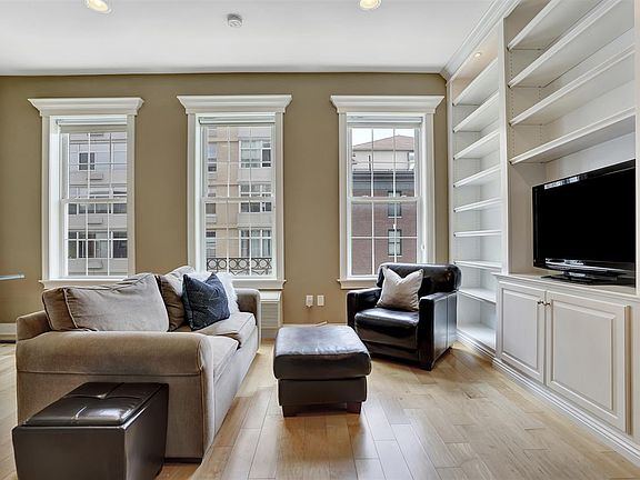 **Fully Furnished** beautiful and bright one bedroom with wall to wall custom built-in cabinets in living room, cutting edge "Smart Home" technology with built in I-pad, hardwood flooring throughout, recessed lighting, 9 foot ceilings, crown molding, kitchen with breakfast bar, stainless steel appliances; washer & dryer in unit and more. Located in the recently built community of Liberty Harbor North, you can have it all including amenities of 24 hour security, rooftop pool & fitness center. Parking Available for an additional fee.