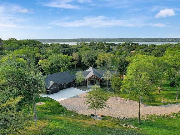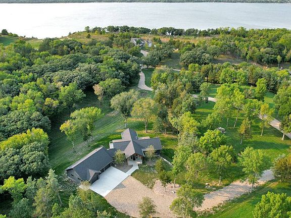 BRAND NEW custom home located on a sprawling 2.9-acre lot in The Timbers, a gated community with just 14 lots, located on Lewis & Clark Lake 10 minutes from Yankton, South Dakota. This ranch-style, cedar-sided home with an oversized 3-car garage and walkout basement was completed in May 2021 and is nestled amongst the huge oaks and pine trees on the Nebraska side of Lewis & Clark Lake just 2.5 hours from Omaha, 1.5 hours from Sioux Falls, and an hour from Sioux City and Norfolk. High speed fiber makes this property ideal for those who work remotely or just need to stay connected! The home was custom built by a premier, local builder and combines all of the latest amenities and high-end features with rustic, reclaimed barnwood and tin throughout the home. The home offers a fantastic open-concept floorplan with high ceilings; many large windows that provide picturesque views from every side. Remote control blinds throughout the home allow for privacy, when desired. The large cedar deck extends across the entire back and side of the house to create the perfect outdoor entertaining space and fabulous views of the wildlife and mature oaks surrounding the home. Hardwood floors run throughout the main floor and are accented by natural stone, heated floors in the primary and guest bathrooms. The main entertainment space features a 7-foot, 3-sided fireplace and a gourmet kitchen with an oversized island and live edge granite breakfast bar that serves as a gathering area. The kitchen is well- appointed with upscale granite and quartz countertops, farmhouse sink, top of the line, soft-close Plato custom cabinets which are specifically designed to maximize space and host every amenity necessary for organized storage. Retreat to the main floor owner's suite with expansive windows and a door leading to the deck. The primary bathroom hosts a large double vanity, granite countertops, vessel sinks, and a walk-in shower with gorgeous natural stone tile and invisible drain. The walkout basement has heated concrete floors throughout and boasts two large bedrooms and a premier bunk room with two double-size bunk beds made from reclaimed barnwood. The bunk room is a feature piece when open; however, it can be closed off from the main entertainment space with large 100-year old barn doors. Just a short walk up the hill provides panoramic views of Lewis & Clark Lake, the 2nd largest reservoir in the state, extending over 18 miles with over 90 miles of breath-taking bluffs and shoreline. Directly adjacent to the subdivision are over 5 miles of hiking/biking/equestrian trails on the Army Corp of Engineers property, and just 1/2 mile from The Timbers subdivision, South Shore Recreational Area offers lake access. Lewis & Clark Lake is a wonderful escape where you can fish, boat, kayak, canoe, paddleboard, & soak up the sun. Marinas on both sides of the lake host boat slips just a few miles away, and for the golf enthusiasts, a beautiful, 9-hole golf course is just down the road. Come see this one-of-a-kind property which can be enjoyed year-round! ***This is a gated community and will be shown by appointment only.***