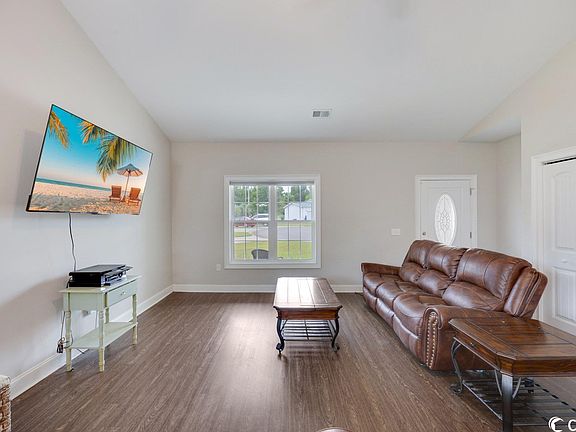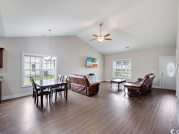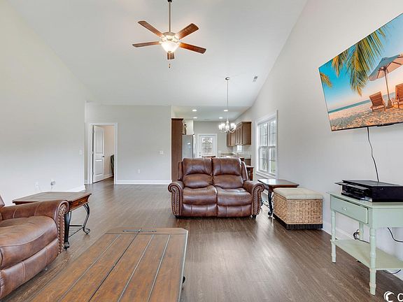 Welcome to The Park at Long Bay, where you'll discover the Lanier floor house plan, featuring three bedrooms and two full baths, located on a 0.34-acre lot. This residence draws you in with its charming covered front porch, while the rear screen porch and patio offer peaceful views of six mature palm trees and a spectacular pond. Inside, the open floor plan is both spacious and inviting, featuring a living/dining room with a vaulted ceiling and a ceiling fan. The kitchen is well-appointed with stainless steel appliances, custom-crafted solid wood cabinets enhanced with crown molding, a convenient pantry closet, and a seamless connection to the living area. Throughout the home, you'll appreciate the upgraded laminate wood flooring, adding a touch of elegance. The master bedroom serves as a luxurious retreat, showcasing a tray ceiling, ceiling fan, and a spacious walk-in closet. The master bath offers a generous walk-in shower, raised-height double bowl vanity sinks, and smooth ceilings, elevating your daily routine to a new level of peace and relaxation. Visit the laundry area, complete with a linen closet for extra storage space. Completing this exceptional property is a fully finished two-car garage equipped with an automatic door opener and a door opener keypad for your convenience. Additionally, the property features gutters and an irrigation system to enhance functionality and maintenance. Residents enjoy the convenience of the community pool and amenity center. This home is conveniently located just off Highway 9, providing easy access to shopping, dining, golfing and numerous other attractions within minutes. Do not let this opportunity slip away - schedule your viewing today and claim this stunning property as your own!