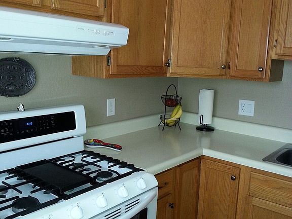 - KITCHEN: Wood Cabinets, Formica Counters, Galley