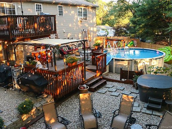 Must see raised ranch with finished basement and back yard made for entertaining! The open kitchen and living area makes the space great for company. Down the hall, the Master bedroom has 2 closets (1 is a walk-in), 2 more bedrooms and a full bathroom. A fourth bedroom has been added in the finished basement along with a family room, full bathroom, plenty of shelving, partial kitchenette and a small office area. Outside is perfect for entertaining with an above-ground, solar heated, salt water pool, a bar, fire pit, and a stone and concrete walk way with river rock. You do not want to miss this one!