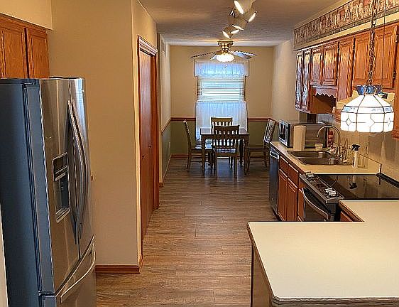 Spacious ranch condo in Walnut Run Condominiums. 2 bedroom, 2 full baths. Eat in kitchen with new floor, large pantry with first floor laundry. All stainless steel appliances. Family room with vaulted ceilings, sky light and gas fireplace. Sunken formal living room/dinning room split. Sunroom with skylights. Full basement with second set of washer and dryer and plenty of storage. Attached one car garage. New carpet throughout.