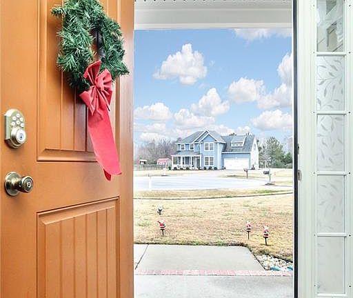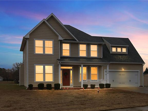 GREAT HOME, just minutes from the VA/NC border! Large, private .92 acre, cul-de-sac lot, located in a neighborhood with walking trails, sidewalks, and community playground. Downstairs features a very open floor plan, large kitchen w/breakfast area, 42 in. cabinets, granite counters, and pantry, also formal living room, dining room & family room w/fireplace. The 5th bedroom/office and a full bath is located on the first floor, along with a year round heated sun room! Large master bedroom upstairs features a tray ceiling, dormer, a large walk-in closet. The luxurious master bath comes w/double vanity, ceramic tile, jetted tub, separate shower, and water closet. 3 more generous size bedrooms upstairs. No flood insurance required!
