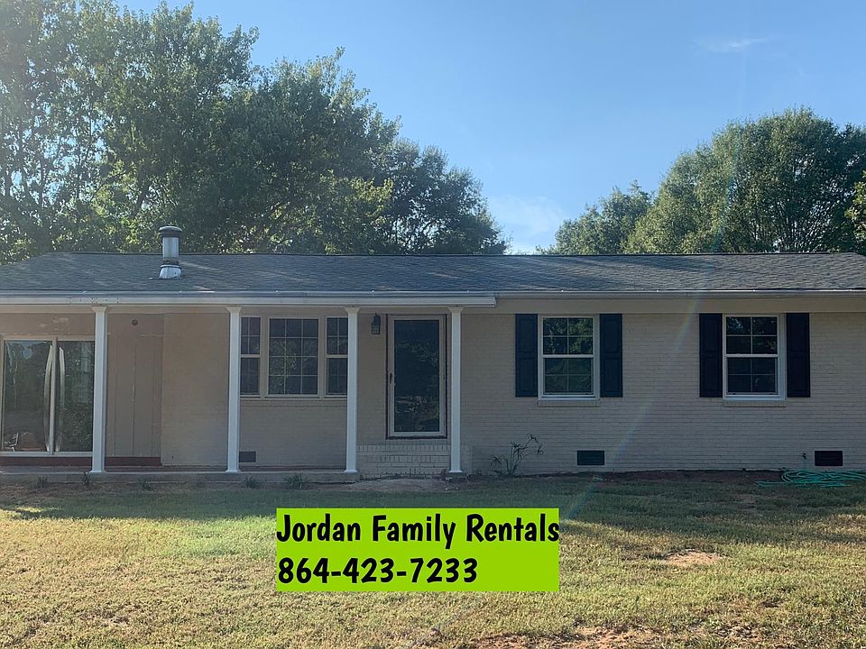 Rent just reduced!! Great 1 story home in convenient Easley location. Newly remodeled. 3 BR + 2 baths. 2 living areas plus a sunroom. Hardwood & vinyl floors throughout the house. Includes refrigerator, but does NOT have a dishwasher Tenant responsible for lawn maintenance & utilities. Absolutely NO PETS! NO SMOKING!
