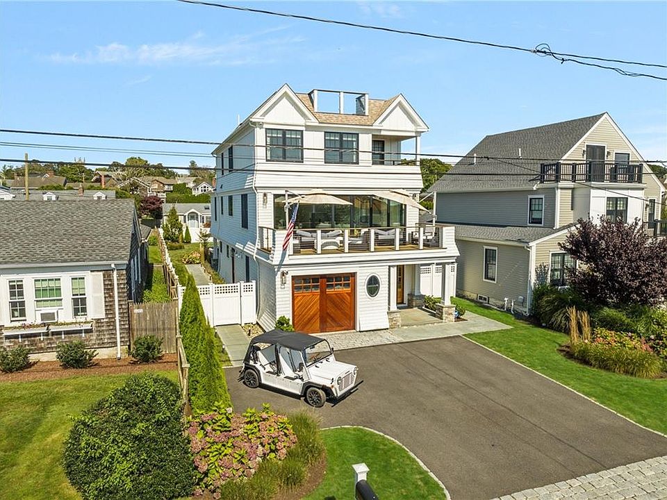 Discover the epitome of luxury and convenience with this exquisite custom-built residence, completed in 2022 by JPS Construction. Nestled on the coveted Easton’s Point, this home offers a perfect blend of sophistication and relaxation, just steps from pristine beaches and minutes from the vibrant heart of Newport. When you step inside, you'll be captivated by the impeccable details and high-end finishes. The interior boasts elegant French white oak flooring throughout and features a spacious open-plan layout on the second floor. Accordion-style sliders seamlessly connect the indoors to a generous deck, ideal for entertaining guests or enjoying serene sunsets. The first floor living area includes a family room that is complemented by a wet bar, which leads out to a beautifully designed ground-level patio. The patio features bluestone and custom stonework, complete with a direct gas fireplace and grill, perfect for alfresco dining. The gourmet kitchen is a chef’s dream, showcasing quartz countertops, custom cabinetry, and top-of-the-line appliances. With 5 bedrooms, including a versatile nursery/office, and 4.5 bathrooms, this home offers ample space and comfort for family and guests alike. Soak in breathtaking views of the water, Easton’s Beach, and the iconic Cliff Walk from the rooftop deck. This residence epitomizes perfection, offering an unrivaled blend of luxury, comfort, and coastal charm.