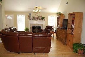 This terrific house is sitting on a large, perfectly manicured yard. Quiet culdesac living. Nice office off the kitchen area. Large back patio. Beautiful laminate floors. The fullsize garage can park an F150 standard cab longbed truck and has a storage room. Greatroom has a woodburning fireplace w/ a granite hearth. The kitchen has large pantry cabinets and a corner lazy susan. Master Bathroom has a corner garden tub, enclosed shower & plant shelves. The Master Bedroom has a trey ceiling with crown molding.