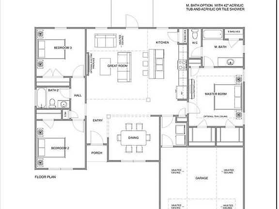 The Ansley by Horizon Home Builders is a 3 bedroom 2 bathroom 1,540 SQFT home. SINGLE level with large great room. Open floor plan concept.