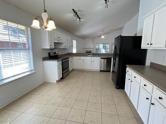 Spacious 3/2 within walking distance to Fairhope Middle School and High School. Front room is a great den or flex space, and opens to the kitchen, dining, and large great room with gas fireplace. Kitchen has tons of cabinet and countertop space, and includes refrigerator. Large primary bedroom with plenty of room for a king size bed, and two additional bedrooms share a hall bath. Tile and laminate floors throughout. Large shaded and partially fenced backyard. Dogs negotiable with $400 non-refundable pet fee. No smoking.