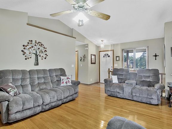 Incredible opportunity to buy a beautiful well maintained ranch style home on a just under 10 acres in Valley Center. A breath of fresh air! Peaceful country living just 10 miles north of Wichita. This home is tucked away on an oasis with an above ground pool and a 30X40 4 car detached garage/Shop. The Living room features a fireplace, vaulted ceiling and wood floors. There is onyx vanities in the baths and in the basement the rough-in bath has a vanity and shower base. The master is spacious, vaulted ceilings with a master bath which has a separate shower and tub. Some upgrades are new lighting, hardware, new tile in kitchen and newer appliances. New windows throughout in 2018. New HVAC done in 2018. New well, pressure tank/wiring and pump. This home has so many things to offer you must see to truly appreciate the peaceful setting of this home with Nice tall trees and an apple and pear tree. THIS IS A RARE FIND SO DON'T WAIT!