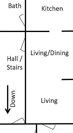 2nd floor apartment with private porch. 2 bedrooms 1 bathroom with washer/dryer hookups large living/dining Full kitchen with plenty of cabinets 1 year lease water additional at $30-40/mo Wired for internet and cable washer dryer hookups