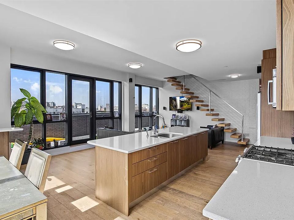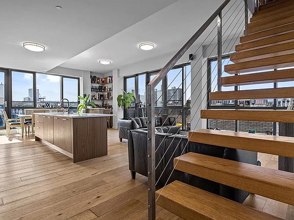 *PRICE IMPROVEMENT* Discover the epitome of Manhattan Beach living in this breathtaking four-bedroom, two-bathroom designer duplex penthouse wrapped in 1,441 square feet of sprawling private terraces and spectacular views of the city, water and Coney Island tower. Tax abatement, garage parking and exceptional finishes make this a not-to-be-missed opportunity to live a luxury lifestyle in Manhattan Beach's most sought-after neighborhood. A gracious foyer introduces 1,822 square feet of seamless indoor-outdoor living, beginning with a dramatic great room paved in chic wide-plank hardwood flooring. Large living and dining areas flank a convenient walk-up bar and a gourmet open kitchen filled with custom cabinetry, stone countertops and a fleet of stainless steel appliances. Walls of windows on the southern and western exposures flood the space with natural light, while two long terraces set the stage for al fresco dining and lounging overlooking the sparkling bay and dazzling sunsets. Head to the king-size owner's suite to discover direct terrace access, handsome built-ins and a huge custom walk-in closet. The primary bathroom beckons with a wide double vanity and oversized glass rain shower surrounded by gleaming tile. Two more spacious and bright bedrooms boast excellent closet space, and one opens to the west-facing terrace. A beautifully appointed guest bathroom, additional storage space and an in-unit LG washer-dryer complete the well-planned main level. Ascend the floating staircase to enjoy cozy gatherings in the beautiful penthouse lounge that could easily serve as a fourth bedroom. Outside, another terrace leads to a 108-square-foot shed perfect for storing garden equipment, toys and lounge chairs. Further on, the 712-square-foot deck and covered seating area invite you to experience truly unmatched outdoor living. Central HVAC, solid 8-foot-tall doors and upgraded sound insulation add to this unrivaled Brooklyn sanctuary's serene and secluded ambiance. This home conveys with two garage parking spots. Built in 2016, The Wave is a spectacular contemporary condominium setting a new standard for style and sophistication in Manhattan Beach. Residents of the pet-friendly building enjoy an undulating glass façade, luxurious lobby, state-of-the-art fitness center and steam room, a meeting room with a kitchenette, laundry, secure garage parking and two glorious rooftop lounges with panoramic views of the ocean, bay and iconic Manhattan skyline. Low monthly maintenance; *421A tax abatement in place until 2030*. Brighton Beach's desirable Manhattan Beach neighborhood is surrounded by the Sheepshead Bay waterfront and the Coney Island Channel. Just blocks away, enjoy glorious Manhattan Beach Park's beach and boardwalk, sports courts and fields, dog park and outdoor amphitheater. Kingsborough Community College, Brighton Beach and Coney Island attractions are also within easy reach. The Shore Parkway, excellent local bus service, and B and Q trains at the Sheepshead Bay station put the rest of the city within easy reach.