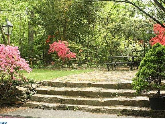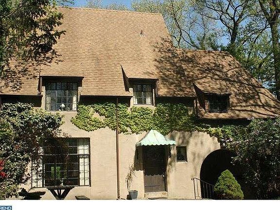 Magnificent, unique, "European style" Stucco/block 3 story home custom built in the 1920's on a fabulous wooded and landscaped lot with natural stone outcroppings, stone patios and exterior stairs, exterior rounded archway connection with stone floor to rear-facing one car garage..There are original custom doors which match the original wood workings and some original cabinetry and built-ins. Lots of hardwood flooring, wood stairs from the flagstone floored foyer.A PR on the first floor and 2 full baths on the second floor (Master and a second bath "Jack-Jill style). Half-way up the stairs is a 2 story high FR /GreatRoom/Studio with an incredible huge Skylight (from the 1920's!!!)there are also a set of wood stairs from this room leading to the partially finished 3rd floor (with great height and windows!!!) Let your planning imagination go wild with the potential of this great interior space... part of which has been used in the past as a bedroom, etc.There is also a full basement ,FP in LR and rear deck.