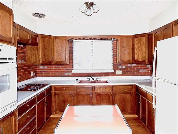 Beautifully landscaped Ranch Property. Fully fenced with a 28' x 32' oversized detached garage/workshop with tall door and additional covered RV Parking. The interior of this 3 Bedroom 1 bath home consists of an additional entryway to a large extra living space with a wood burning stove. Wooden cabinets, doors, and accented framing between the formal living space and dining room give this home additional charm. The front yard has a mature pine tree and blue spruce while back has additional trees, shrubs, and a matured garden area. Sale includes Shed, Clothing Washer & Dryer, Electric Stove Top, Wall Oven, Dishwasher, and Refrigerator.
