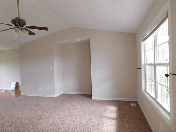 Great Rural Feeling just moments from Evansville. This Ranch style home is 10 years new and READY YO OCCUPY ! Your new home offers Maintenance free vinyl exterior, split bedroom design and is located in Castle Middle schools' district. The volume ceiling in Family room is a nice touch and this room opens to the eat in kitchen. 104 Wabash also offers fully applianced kitchen, master suite with walk in closet and separate Laundry Room ! The Patio and back yard adjoin wide open field offering extra privacy ! Carpet JUST INSTALLED for new owner . Lot 100 Heim Ridge Sub