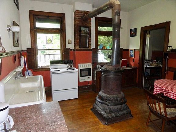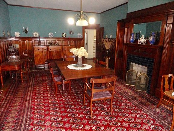 Picture yourself stepping back into time in this gorgeous 8 bedroom, 3.5 bath home including a 2 bedroom, 1 bath rental ($750 per month). This brick estate features 9 fireplaces, beautiful woodwork, an expansive sunroom, and a 2 car garage plus outbuilding. This home has hot water heat + forced air in the apartment. You'll love the original kitchen plus an additional prep kitchen. Cash or conventional financing only.