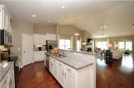 Single-story home with bonus room/guest suite has 4 spacious bedrooms, 3 full bathrooms. The master bedroom overlooks back yard and features an oversized walk-in closet. The great room is open to the kitchen and dining area. The large kitchen features a center island and corner pantry. There is an additional formal dining room. Options with this home include a sunroom, upstairs guest suite, hardood and tile floors and more.