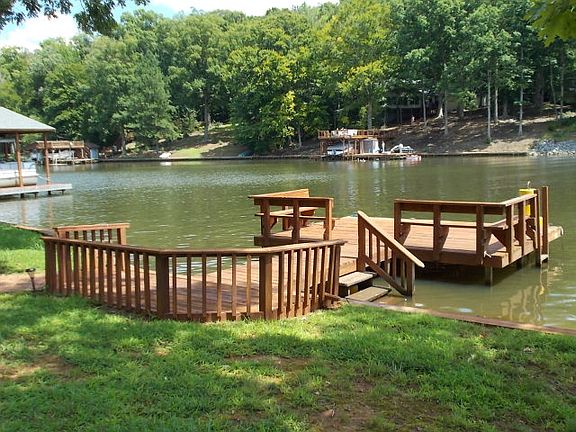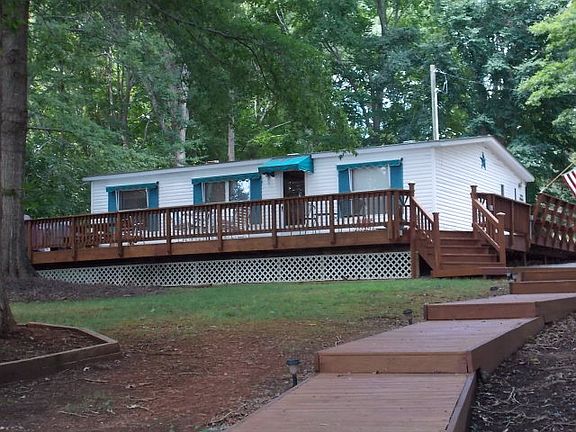 Incredible point lot w/441 ft of bulkhead waterfront, amazing main lake view situated in a sheltered cove!! All the advantages of main lake in the privacy of a beautiful wide cove. 3 BR, 2BA, home, guest house (sleeps 6), double boathouse with 2 lifts and storage, additional swim dock, sandy beach area, 28' workshop/storage building, lots of walkways to lake, asphalt driveway, gentle slope to water,irrigation pump,lovely shaded yard. Heat pump and roof only 2years old. New carpet & kitchen flooring. Deep water. Wonderful wrap around deck & awnings. 4 bedroom perc - this manufactured home is like new - use it now and build your dream home later on the one of a kind dream lots on Lake Gaston!