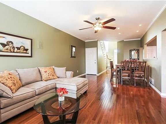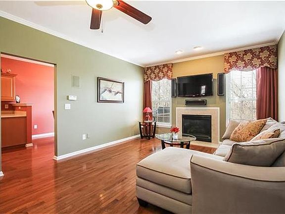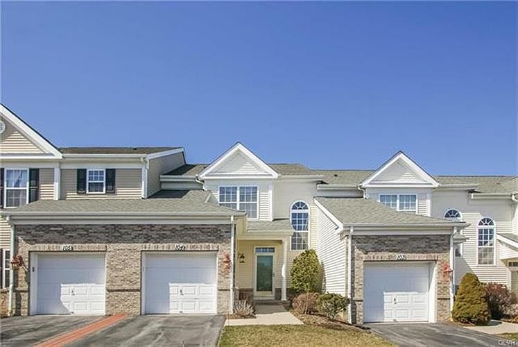 Beautiful 3 br Morgan Hill townhome with prime location overlooking the 8th hole and no homes behind you! Enjoy the great views of the skyline from your deck! 2 story foyer, open floor plan with versatile dining area and family room with recessed lighting, hardwood floors and a gas fireplace flanked by oversized windows on either side. Maple kitchen with corian counters, newer GE profile ss appliances, 5 burner gas stove, pantry and sliders to the deck. Custom window treatments, 1st fl laundry with utility sink, front load washer and dryer included! Upstairs are 3 nicely sized bedrooms. The master offers hardwood floors, 2 California style custom closets, tiled bath with jacuzzi tub, vaulted ceiling and surround sound. Full walkout basement with slider and high ceilings. Convenient for commuters and Rt. 78, 33, 22 and minutes to the NJ border! HOA covers lawn, snow, trash, exterior, pool and gym. Resort style living - enjoy the renovated on site restaurant with amazing views!