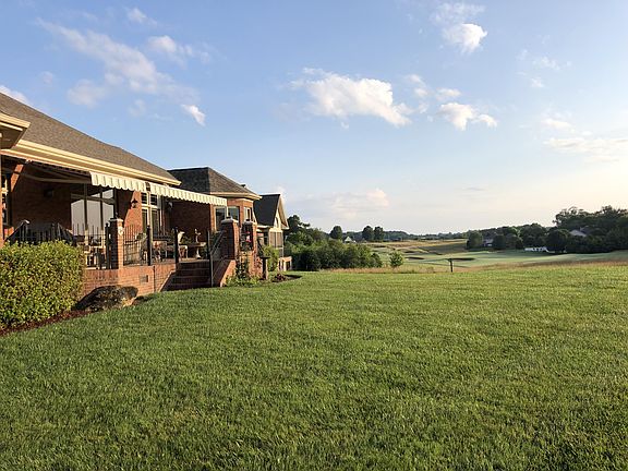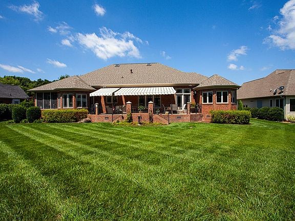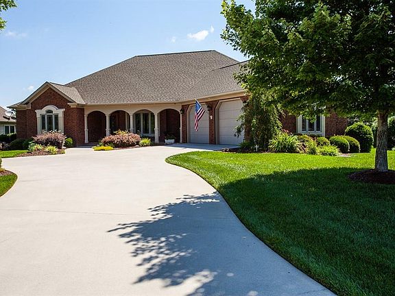 Golf Front Living at its finest along with beautiful views! Quality custom built home with all brick exterior overlooking the 18th tee. Maple custom cabinetry throughout. Granite counter tops in the spacious custom kitchen, cork flooring, breakfast nook, butler's pantry/wet bar and OPEN family room are just a few of the upgrades. Formal Dining Room and Living Room are great for entertaining. Master suite is generous and includes custom walk-in closet, large shower and air jet tub w/separate marble top vanities. Two other bedrooms share a full bath. Even the laundry room is spacious. One level living is easy here, but there is more upstairs via the garage including another half bath and two ample rooms. Add'l storage is more than plentiful. The extras are too many to list.
