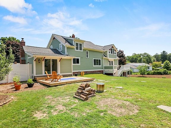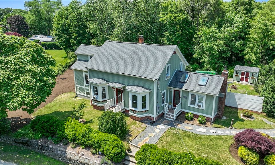 Make this tranquil oasis that abuts the Seacunke Sanctuary your own! Enter through the dining room, which features a working fireplace, chandelier, vaulted ceilings, skylights, hardwood flooring and overlooks the mudroom/sunroom also featuring hardwood flooring and direct laundry room access through a dual swinging WWI era door. The updated kitchen has stainless steel appliances, granite countertops, and mahogany cabinets. The 1st floor bathroom includes a unique adjustable backlit touchscreen mirror, vinyl flooring, and a walk-in shower. The front to back living room features a customized window seat with slider window, built ins, and hardwood flooring throughout and pairs beautifully with the family room perfect for extended entertaining. There's also room for your home office. This is a true modern farmhouse with a spacious backyard, outdoor seating areas, beautiful gardens and fruit trees. A destination home ideal for commuters being only minutes from Providence.