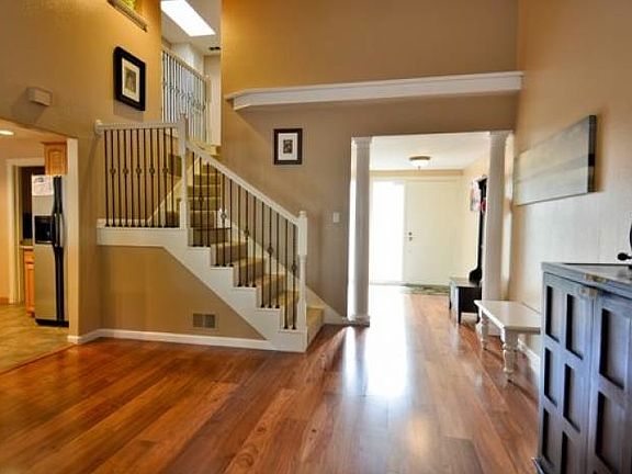 Tastefully & Completely Remodeled this Open Floor Plan Town Home, Features 2 Bedrooms & Loft, 2.5 Baths, with Cherry Wood Hardwood Floors, Custom Woodworking Throughout, Vaulted Ceilings, Designer Paint, Wrought Iron Railings and 2 Flat Screen TVs. Elegant Entry Blends Into Large Living Room with Slate and Wood Surround Fireplace Complete with Flat Screen TV, Vaulted Ceiling with Ceiling Fan/Light and is Adjacent to Light & Bright Dining Area with Chandelier. Spacious Kitchen with Granite Counters, SS Appliances, Tile Floor, Track Lighting, and Bar/Counter Seating. Stunning Master Suite with Flat Screen TV, 3 Mirrored Door Closets & Fantastic Bath Room Complete with Granite Counters, Tile & Glass Block Over-Sized Shower, Designer Brushed Nickel Hardware and Your Own Sky Window. Inviting Guest Bedroom with Ceiling Fan is Across from Beautiful Hall Bath with Tile Floor, Marble Counter, Tile Sur- Round Tub, Plus Designer Hardware, Lights, & Mirror. Extras Include Indoor Laundry, Walk-In Pantry, 2 Car Attached Garage, Close to Downtown Danville, Hwy 680, Restaurants & Shopping.