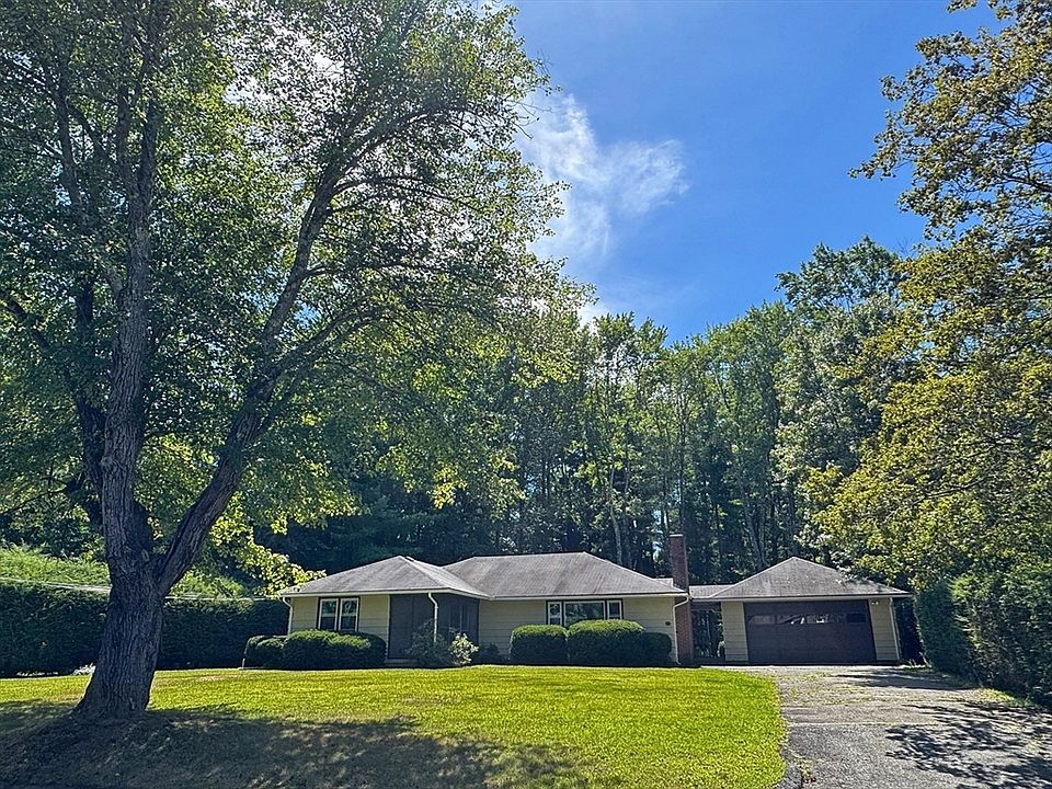 Enjoy one-level living with all the convenience of living in town, with this quality-built home featuring beautiful hardwood floors and natural woodwork. The spacious, well-appointed eat-in kitchen boasts ample cabinets, all solid wood, and the dining area that is open to a large living room, which includes a fireplace and picture window, as well as access to the screened porch in the front. The primary bedroom has a new half bath. The full bath was recently remodeled and boasts a tiled walk-in shower. There's plenty of closet space, including the walk-in cedar closet in the hall. The basement offers additional living space, including the family room, which is knotty pine with a bar and fireplace, as well as an attached room, a half bath, and a utility/laundry room. There is also a full walk-up attic and an open breezeway that connects to a two-car garage. Set back from the road on .67 of an acre with a nice mixture of open and woods—easy access to town, shopping, I-91 & Rte 2.
