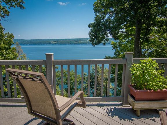 You will love the scenic drive through the vineyards to your beautiful custom built cedar shake home with expansive panoramic views of Seneca Lake. You will find custom details throughout, such as the various woods used in the flooring.You will see views of Seneca Lake from every room. Enjoy a peaceful dinner on your large deck with expansive views of Seneca Lake. This distinctive home offers 2.5 acres allowing you the privacy you desire. This new home offers 3 spacious bedrooms and a first floor laundry. Your lower level bedroom offers you a walkout to your personal sitting area.
