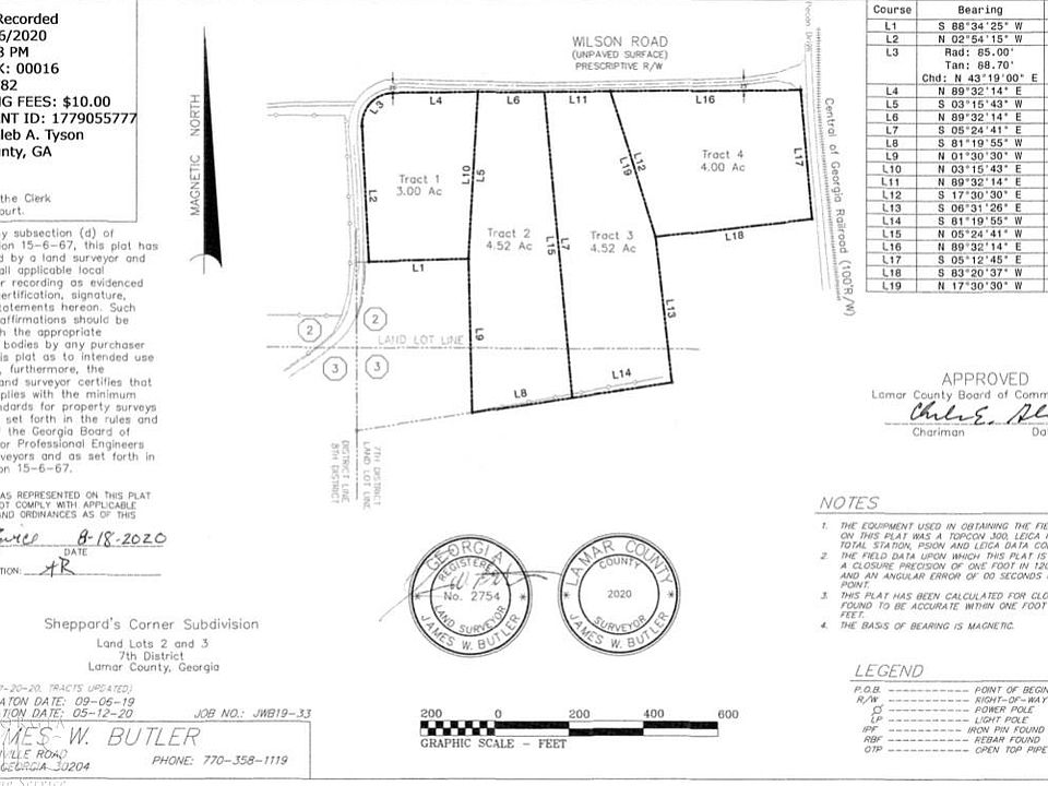 Get out of the city and into the FRESH COUNTRY AIR! Only two 4+ Ac prime building lots left at the Sheppard's Corner, a newly developed subdivision just over the Milner city limit and minutes from I-75 and Highway 41 South. This former family owned pecan grove offers exceptionally level building lots with multiple options for home placement. Access to sewer and water from Pecan Drive. Double Road frontage: 349' on Pecan (paved) and 511' on Wilson (gravel). Recent survey is available as well as positive, Level 1 soil tests. Tracts are zoned AR-1 with 1400 sf minimums and no HOA fees. Build now or build later but secure your lot purchase today! Use our builder or bring your own! Buy both tracts (lots 3 and 4) and build right in the middle. Life is good in gracious and growing Milner where the kids can run free and the locals meet for good eats at the Milner Place Diner. The City of Milner is also home to one of Georgia's top-rated Private Schools (Pre-K through 12)!! Quite the Life!!