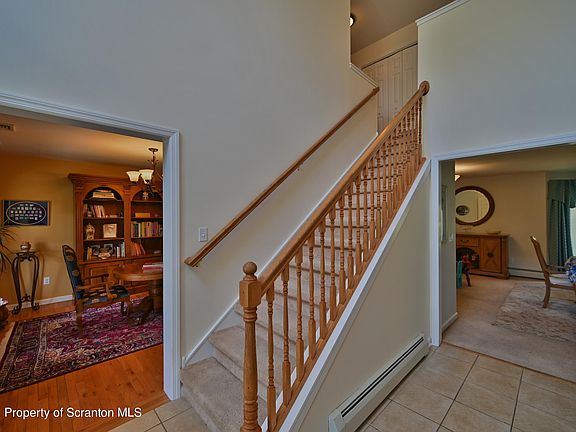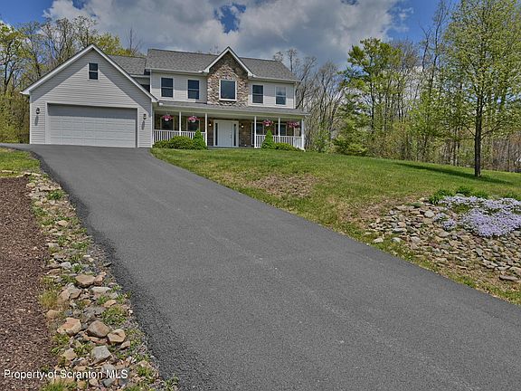 Welcome home to the prestigious Windsor Hill development in Roaring Brook Twp in North Pocono School District. Fall in love with the tranquil location sitting on 1.5 partially wooded acres and take in nature from the front porch to back deck. Featuring a two story center stair foyer, large kitchen with island, Samsung appliances, and breakfast area; you'll also find a nice sized living room with marble fireplace, a formal dining room with hardwood floors and a family room or work from home office also with hardwood floors, and a half bathroom. Four bedrooms are on the second floor with two full bathrooms; one in the primary bedroom and one in the hall. Rounding out this beautiful property is a two car attached garage and it's all comforted by propane hot water baseboard heat and central air. Not enough acreage for you? The vacant lot next door is also available for an additional 1.3 acres. Call today to check it out.