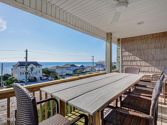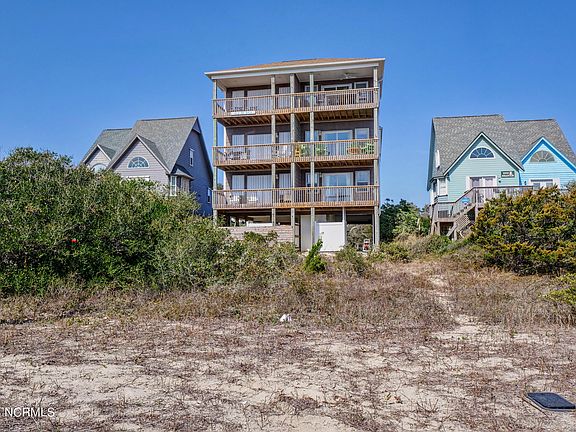 2nd row oceanfront home with breathtaking views of the ocean from all 3 oceanside decks, and sound/marsh views off the rear deck. 4 bedrooms and 3 full baths with additional sleeping quarters on the 3rd floor will allow this property to be an excellent vacation rental or second home. Primary suite with walk-in shower and private deck, 3 bedrooms and full bath on 1st floor. Open kitchen, dining, and den all with ocean views and deck with 4th bedroom on 2nd floor, and flex space to be used for additional sleeping quarters, office or entertaining to watch those breathtaking sunrises from the large outside table on the top deck. Partially furnished see the list of items that do not convey attached. Large lot location allows for plenty of room in the space between home and S Shore Drive that allows those great views, short walk to public beach access across street, all with more privacy and parking. Very well maintained and has hurricane shutters already in place. Plenty of parking and storage room with utility sink and outdoor shower on ground floor.
