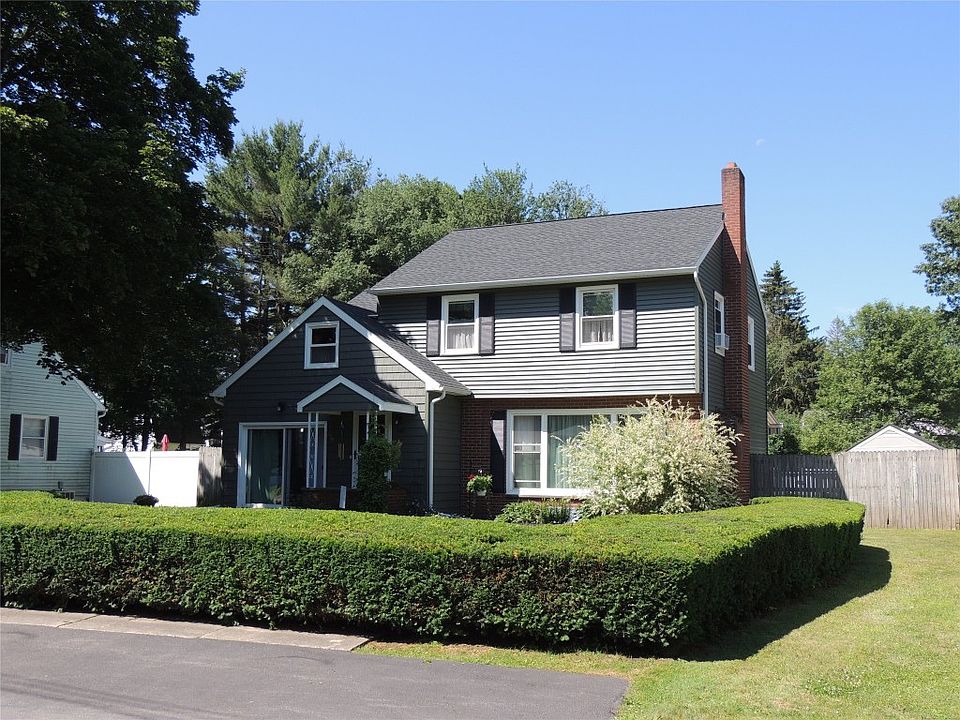 Lovely, well cared for two-story colonial with many updates and flat, fenced backyard with an above ground pool and shed. Step into the welcoming entry that overlooks the large, bright living room with wood burning fireplace. The spacious dining room has sliders to the deck that is covered by a motorized, retractable awning. Step down from the deck to the covered patio space that leads to a backyard that is like your own personal oasis. There is a large kitchen with new stainless-steel appliances and off the kitchen is a family room/playroom or it could be a fifth bedroom. There is also a half bath on the first floor. Upstairs is the master bedroom plus three other good-sized bedrooms and a full bath. The walk-up attic is the perfect storage spot. In the finished basement is a large great room as well a laundry room. There is a newer roof, siding, replacement windows and a new pool liner and filter. This spacious home has so much to offer both inside and out.