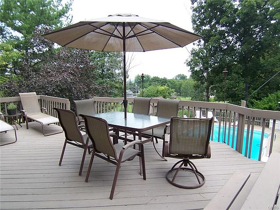 Welcoming Contemporary style home is perfect for the buyer who favors modern decor! New kitchen with black cabinet finish, granite and new appliances. Formal living room with fireplace and cathedral ceiling open to formal dining room. Lovely family room with hardwood floor and floor to ceiling windows. 1st floor laundry room and half bath. 4 large bedrooms with generous closets. Master bedroom with full bath including Jacuzzi and separate shower. Sleek main full bath. Walk-out basement with family room, full bath and office. Salt water inground pool. All this with privacy and a view! Basic STAR savings of $680.00 off the school taxes is not reflected in the amount shown.