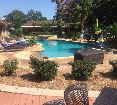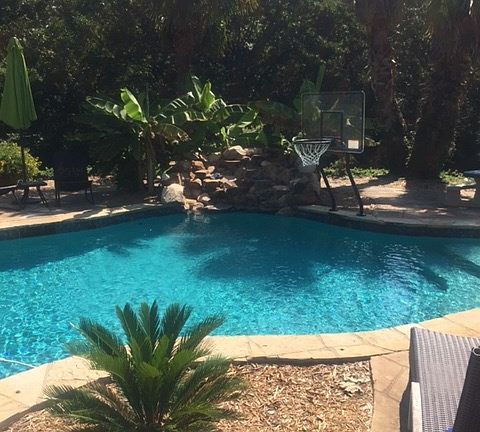 This home has so many amenities . Fabulous pool with waterfall, & gorgeous landscaping. Separate playground area for the kids. Huge playset remains with the property & also has covered sandbox. A kids paradise. Covered outdoor patio overlooking pool, as well as separate deck for large gatherings.