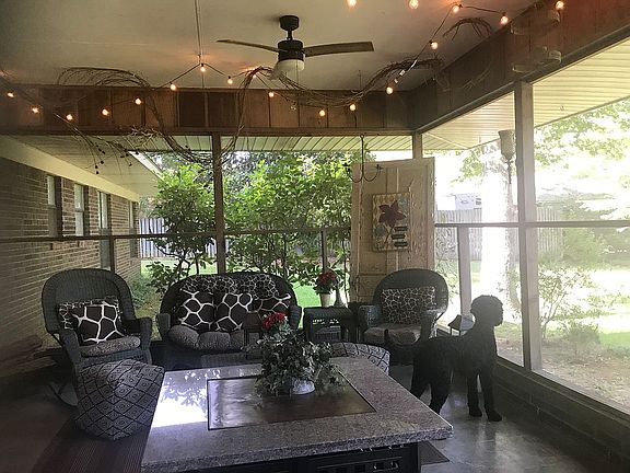 LOCATION! LOCATION! LOCATION! If small city, country club, neighborly cul-de-sac living is what you are looking for, you have found it! If we could pick up our beloved, newly roofed, 2300 sq.ft. home and take it with us, we would! With a 500 sq. ft comfortable den with gas log fireplace and a large master bedroom with two great closets, you will enjoy both ends of this home. You will then want to step out back to the fenced in yard with the screened in porch and the 28' x 24' shop and storage outbuilding. With gas conveniently piped for the deck and the sunroom, grilling and watching football out back in the fall is the greatest. The best part of this place are the people of the neighborhood. What a family of neighbors! Get to know them better by sharing your storm shelter with them. (It has held 14 when needed.) The country club is only a quarter of a mile away. If you can excuse the boxes and are serious about buying, we will show it today! Hurry!
