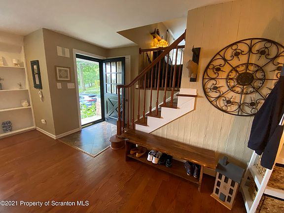 Split level home features main level family room with custom built-in bookcases and window seats. Main level master bedroom suite, his and her closets, walk-out deck and a full tile bath with double vanity and great linen storage. Hardwood flooring and updated brick fireplace highlight the spacious living room. Open floor plan flows into dining room and kitchen. Mariotti kitchen features Homecrest cabinetry, tile flooring, travertine tile backsplash and breakfast bar. Walk-out to the two tier deck, perfect for grilling and entertaining. The third level houses three bedroom and two full, tile bathrooms. Each bedroom has updated fan/light kits, updated laminate flooring and double closets. Good basement storage, laundry and an attached two car garage. 2016 roof. Garden storage shed and perfect yard to set back and relax!