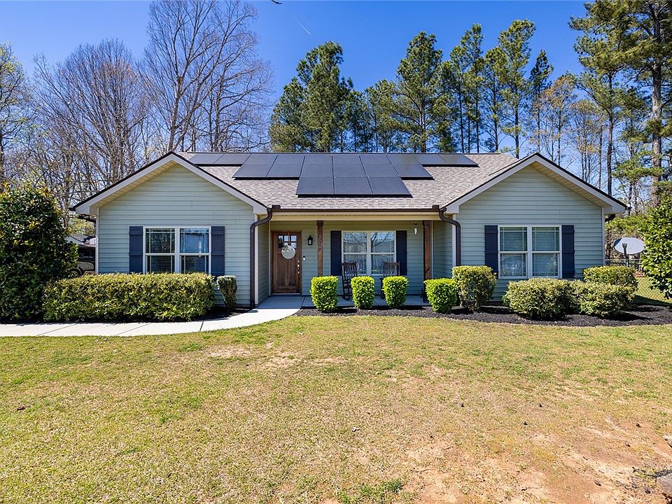 Bring your chickens- 104 Wrentree Dr. is ready for its next owners. This one level beauty is situated on .65 acres with no HOA. You will love the freedom you have here to make the house your home. The large corner lot is fenced and there is even a storage building. You will love the large living room when you enter that opens up to the dining area and kitchen. The split floor plan allows for lots of privacy. The primary suite also has a walk-in closet and large bathroom. The 2 additional bedrooms are spacious and share the 2nd bathroom. You will love the large closets in the secondary bedrooms as well. Enjoy evenings on the back patio with a ton of privacy. The home is currently zoned to Wren High School and is convenient to shopping and restaurants in Easley as well as Anderson and Greenville. Eligible for 100% financing with USDA. Solar panels are leased and will need to transfer to buyer. Call Jenny at 864-430-3462 for a private showing.