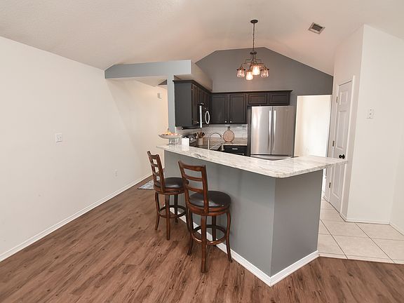 3 bedroom 2 bathroom split, open floor plan with soaring cathedral ceilings and plenty of natural light in Indigo Village. The A/C was new in 2019 and the roof is brand new, installed in November. The updated kitchen is open to the great room and features a complete Whirlpool stainless steel appliance package, granite countertops with a tile backsplash, a farmhouse sink with , and pantry closet and a breakfast bar. The front room can be used as a flex space for dining, office, classroom, or anything else that you might need.