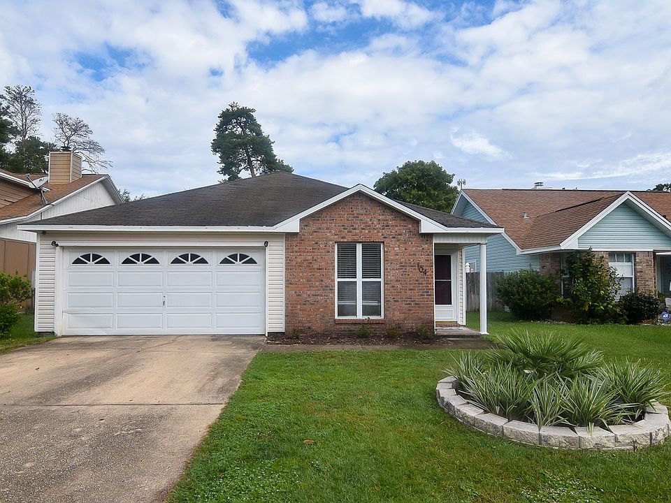 The master bedroom includes a large walk-in closet and its own bathroom with dual vanities. Enjoy the outdoors on your covered concrete patio which extends out - the perfect spot for a grill or a fire pit. Additional features of this home include ceiling fans, a gas fireplace, plenty of storage closets, and low maintenance solid surface flooring throughout. This home is conveniently located to shopping, dining, the beaches, and military bases.