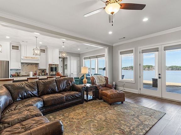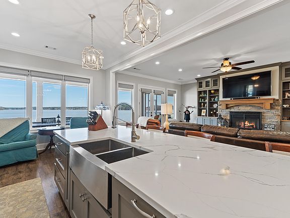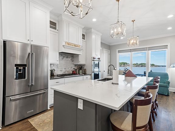 STUNNING CUSTOM LAKEFRONT HOME ON SPECTACULAR LOT! CHOICE LOCATION/CHOICE LOT - PANORAMIC 365+/-FT OF POINT WATER FRONTAGE. Upscale newer construction - 4 BR 3.5 BA w/ oversized bonus room. 3 BR, 2.5 BAs on main. LIVE ONLY ON MAIN IF DESIRED. Open floorplan with lake views pouring in from almost every angle. 10 foot ceilings and 8 foot doors on main. Primo quartz kitchen with top of the line appliances - Wolf gourmet double oven, Wolf gas cooktop, U-line wine fridge, Zephyr vent hood, Cove dishwasher, microwave drawer, coffee bar and pantry space galore! Smashing master on main with sweeping lake views for miles complete with dedicated thermostat and HVAC unit. Oversized shower, double vanity, soaking tub with drying jets, separate walk in closets. Home has wide open floor plan - Scratch proof/water proof luxury vinyl allows endless indoor/outdoor lake centered fun! Deluxe laundry room on main.. Upper level features bedroom and full bath as well as oversized bonus room - perfect bunk room, pool room, theater etc. So many hidden upgrades - blown in insulation (LOW power bills), custom blind/shades - well thought out ample outlets, tankless water heater etc. Beautiful landscaping getting ready to POP! Newer seawall and generous rip rap. Irrigation system that pulls from the lake. Screen porch with views to die for! Additional lakeside porch that words can't do justice. Double attached garage, Addt'l separate garage with double roll up doors. Most desired location. Views for miles! No HOA. Fee simple. The best of the best. PERMANENT VACATION!