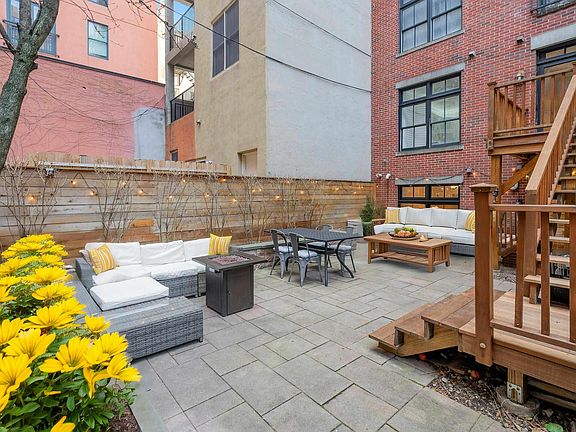 Welcome to 104 York St, an exquisite boutique building nestled in the highly coveted Paulus Hook neighborhood of Jersey City. This rare gem offers 2 bedrooms, 2 bathrooms and a stunning private backyard and patio. Your open living room seamlessly extends onto a gorgeous deck with steps down to your very own backyard oasis, complete with pavers, lush landscaping, fencing and elegant lighting—perfect for relaxation or entertaining. Inside, the top floor showcases a spacious, open-concept living and dining area that flows into a renovated chef's kitchen outfitted with new KitchenAid appliances. Gleaming hardwood floors extend throughout the home, enhancing its timeless charm. The lower level features two generously sized bedrooms, one that gives you access to the tranquil yard plus the primary suite features a beautifully gut renovated bathroom boasting a sleek vanity, modern fixtures, and updated lighting. Additional features including freshly painted interiors, crown molding, hardwood floors, a gut renovated guest bathroom and the convenience of an in-unit washer and dryer make this home truly move-in ready. This ideal location within the PS16 school district and top private schools, you are situated just a few blocks from Exchange Place PATH, Grove Street PATH, and the Manhattan ferry, this property offers unparalleled access to transportation. You'll also enjoy proximity to Jersey City's finest restaurants, gourmet markets including Whole Foods, picturesque parks, boutique shopping and vibrant nightlife. Blending luxury, comfort, and an unbeatable location, this home is a one-of-a-kind treasure waiting to be yours!