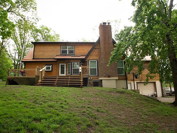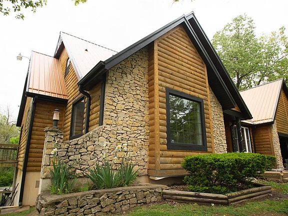 Cozy Cabin home overlooks the city of Anderson, MO. Many updates to this home made which include a Copper roof with Mahogany trim, new gutters, new HVAC, and back decking. Much of the carpet has been removed and replaced with hardwood flooring. The home boasts over 3000 sq. ft with 4 bedrooms, walk-in closets, and 3 baths. There is even a bonus room in the basement or man cave. New skylights provide natural lighting throughout while several mature oak trees provide seclusion and shade. Additional features: Jacuzzi tub and heating lamps in the Master Bathroom, Central Vacuum System, dual fireplace (wood or natural gas) vents heat throughout, three car garage and ADT alarm system. Sits on a wooded 1.4 acre lot.