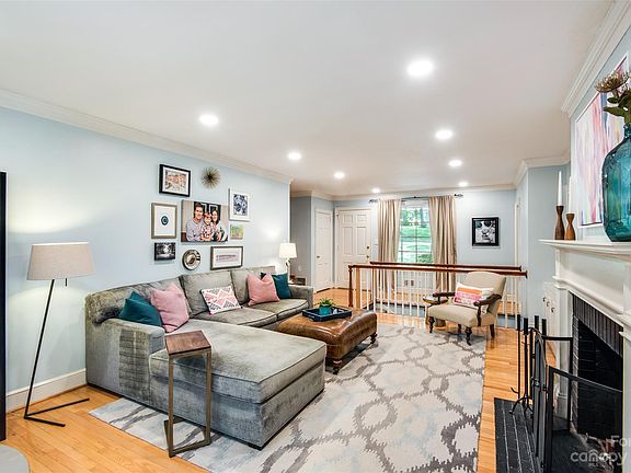 As seen on HGTV! This beautiful 3 bedroom / 2.5 bath brick ranch was featured on the HGTV pilot Carolina Reno. This Crouch built home has a large main level living area with built-in and a fireplace. Large primary bedroom has a renovated bath with marble counters and a large walk-in shower. 2nd bath renovated with subway tile, new tub, and marble countertops. Large eat-in kitchen has two-tone cabinetry, bar seating, beverage station and sitting area. Kitchen leads out to large deck over looking rear yard. Large open basement has stone fireplace, built-in cabinetry, and leads out to rear brick patio. Recessed lighting throughout, vinyl windows. Mature landscaping. No permits on file for primary bath & basement. Listing agent is owner.